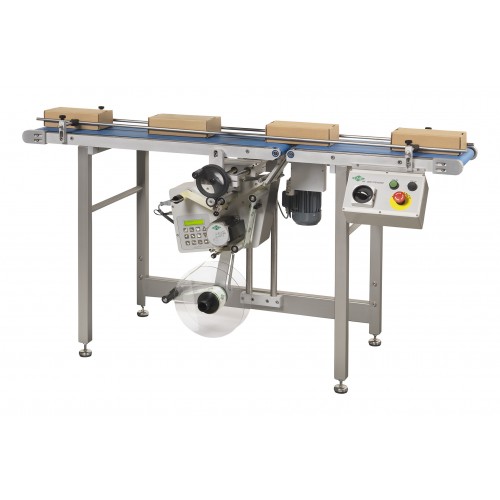 The dispenser are mounted on adjustable spindles, for easy adjustment of the desired label position. The dispenser can glide out to the side of the conveyor frame, for easy change of label roll.